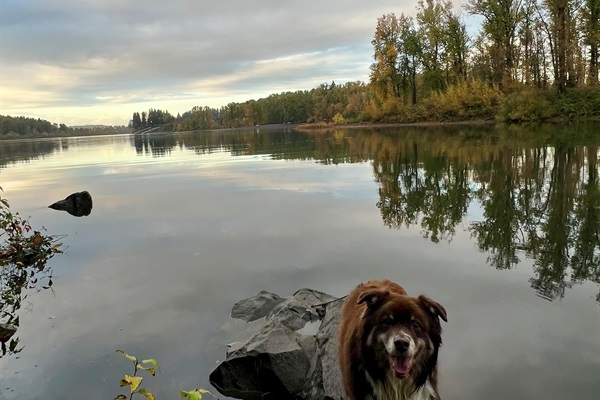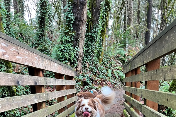 One of the resident Aussies, Etta James, helping in the cottage backyard.