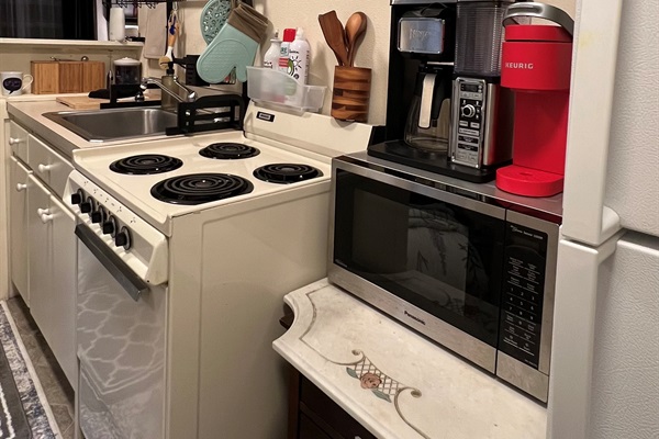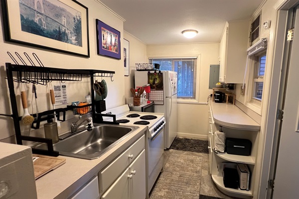 Full size washer and dryer, along with scent-free soap provided for your laundry needs.